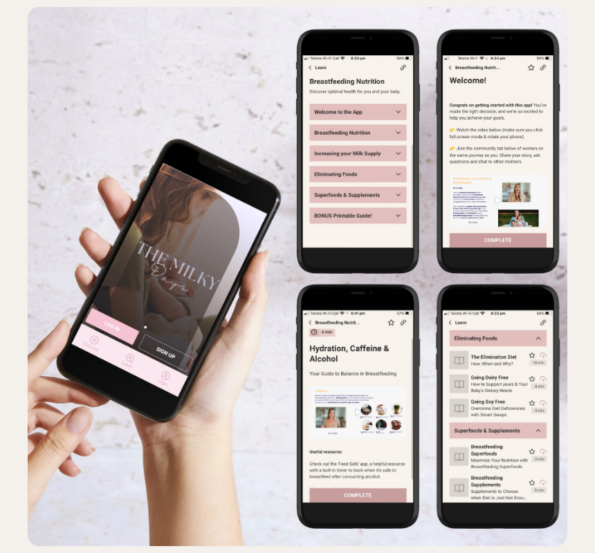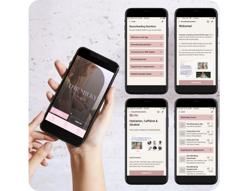 Access The Complete Breastfeeding Nutrition Course through The Milky Days App and take comfort in knowing you can take your time to understand each module. It's the perfect app to open up during that 2am feed. Enjoy engaging videos paired with written insights, to optimise your knowledge on the best ways to support your breastfeeding diet.